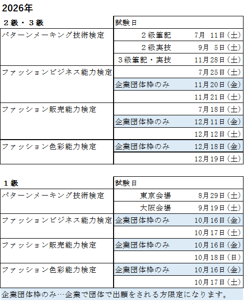 来年度の検定試験の日程が決まりましたのでご案内を申し上げます。